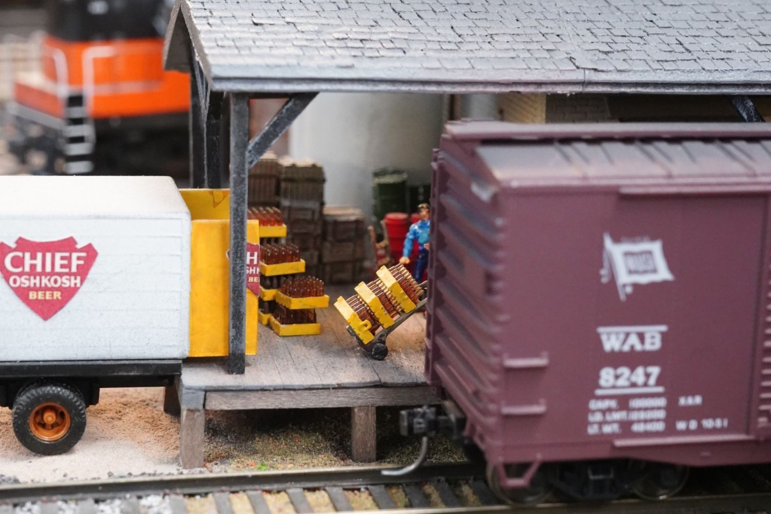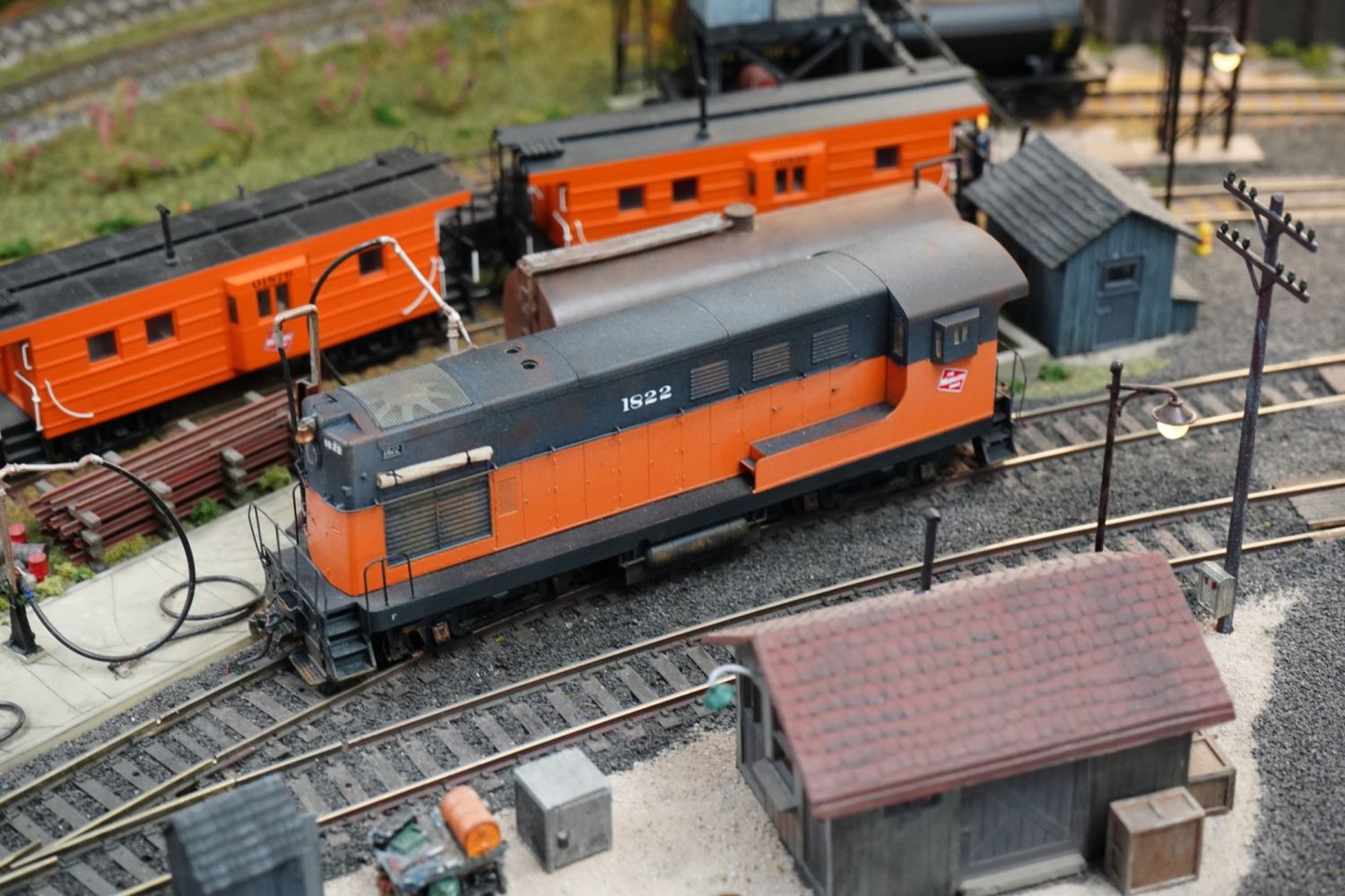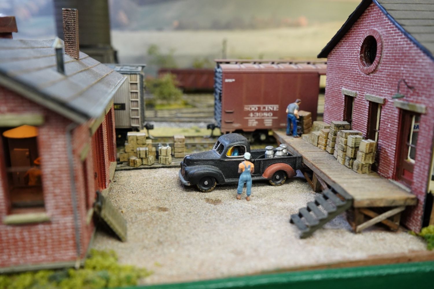 The two-deck layout fills two rooms in the garage at Jeff’s home in Burbank. As you can see from the photos, it is filled with many small scenes that bring it to life and give a real feel of operations on this largely rural line.